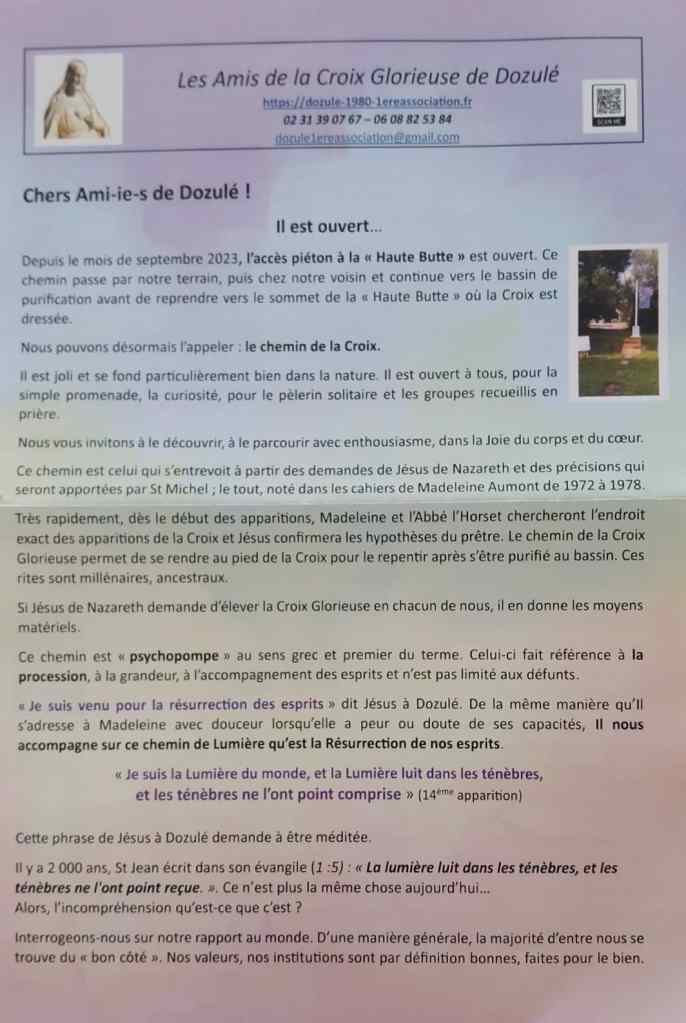 La lettre aux Amis n°43 , de cette année 2024, accompagnait cette information.