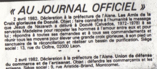 - En septembre 1981, très intéressée par le message de Dozulé, Mme Roque vient à St Quentin en Picardie pour rencontrer Albert Delbauche et demande des livrets. Elle reviendra dans ce même mois en chercher d’autres.