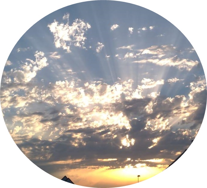 Un ensemble de nuages qui avaient l’air dessinés, pas réels et au milieu de ces nuages, une trouée où apparaissait une lumière très douce, pas du tout aveuglante.